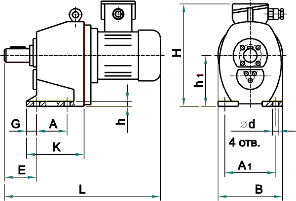 Мотор-редукторы серии 4МЦ2С - габаритные и присоеденительные размеры – исполнение на лапах