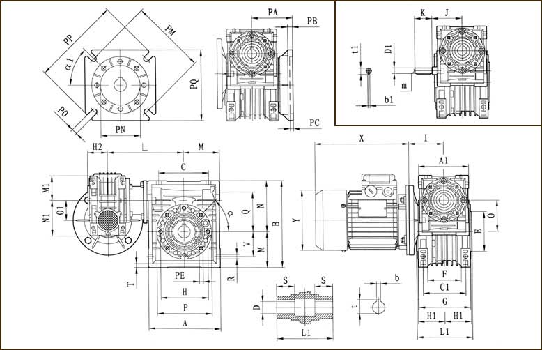 040/075 - комбинация редукторов 040 и 075 габаритов;